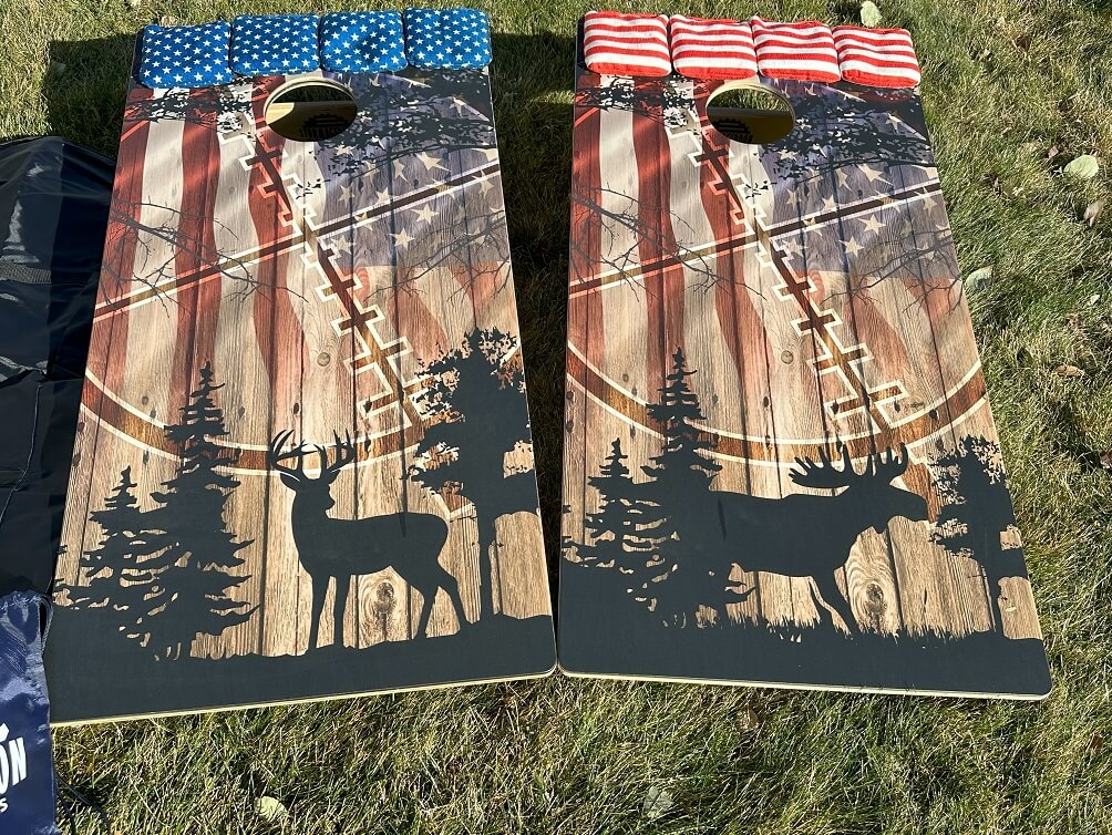 We have made custom professional grade cornhole boards for around 6 years. We use a special UV Direct Print process to print the image right onto the board eliminating the use of any vinyl stickers that could peel up over time. Do you have a design you would love to have? Simply contact us and we can give an estimate based on what options you would like to add. Click below to see nearly 280 pre-made designs to choose from or give us your own.